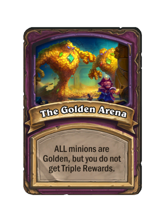 The Golden Arena is a Anomaly in Hearthstone Battlegrounds. Effect: ALL minions are Golden, but you do not get Triple Rewards. This card is no longer in the pool (Legacy).