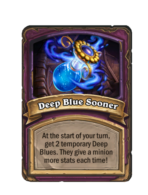 Deep Blue Sooner is a Anomaly in Hearthstone Battlegrounds featuring Start of Turn. Effect: At the start of your turn, get 2 temporary Deep Blues. They give a minion more stats each time!. This card is no longer in the pool (Legacy).