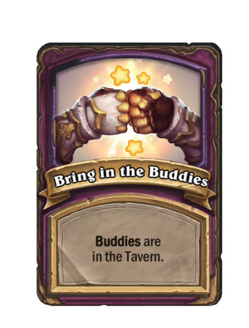 Bring in the Buddies is a Anomaly in Hearthstone Battlegrounds. Effect: Buddies are in the Tavern.
