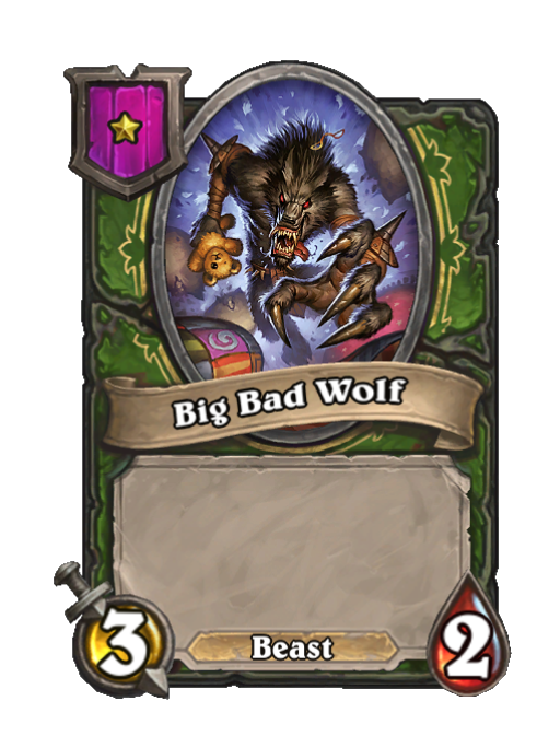 Big Bad Wolf is a Tier 1 Beast Minion in Hearthstone Battlegrounds with 3/2 stats. Created by: Kindly Grandmother. This card is no longer in the pool (Legacy).