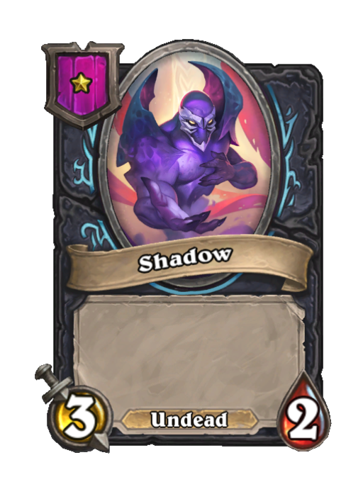 Shadow is a Tier 1 Undead Minion in Hearthstone Battlegrounds with 3/2 stats. Created by: The Uninvited Guest. This card is no longer in the pool (Legacy).