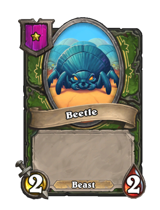 Beetle is a Tier 1 Beast Minion in Hearthstone Battlegrounds with 2/2 stats. Created by: Boon of Beetles.