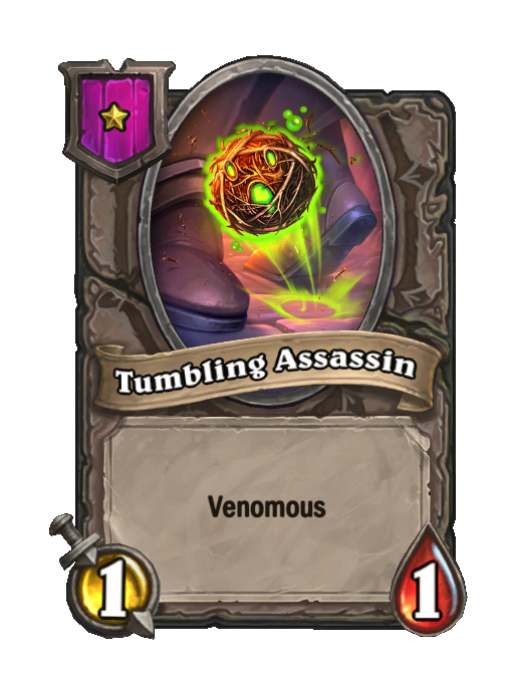 Tumbling Assassin is a Tier 1 Minion in Hearthstone Battlegrounds with 1/1 stats featuring Venomous. Effect: Venomous. Created by: Toxic Tumbleweed. This card is no longer in the pool (Legacy).