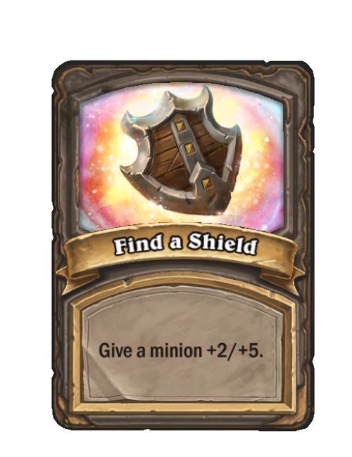 Find a Shield is a Spell in Hearthstone Battlegrounds. Effect: Give a minion +2/+5. This card is no longer in the pool (Legacy).