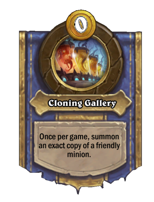 Cloning Gallery is a Hero Power in Hearthstone Battlegrounds. Effect: Once per game, summon an exact copy of a friendly minion. Created by: Zerek, Master Cloner.