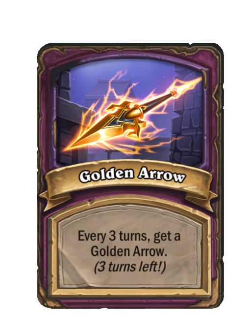 Golden Arrow is a Anomaly in Hearthstone Battlegrounds. Effect: Every 3 turns, get a Golden Arrow. (3 turns left!).