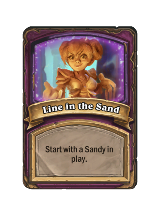 Line in the Sand is a Anomaly in Hearthstone Battlegrounds. Effect: Start with a Sandy in play.