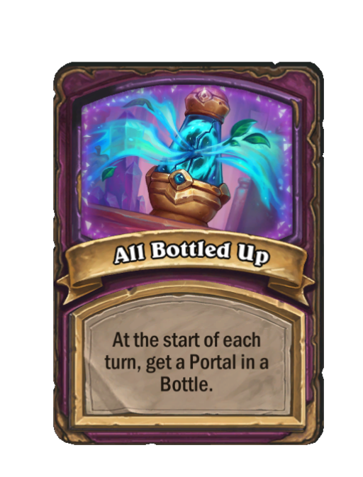All Bottled Up is a Anomaly in Hearthstone Battlegrounds featuring Start of Turn. Effect: At the start of each turn, get a Portal in a Bottle.