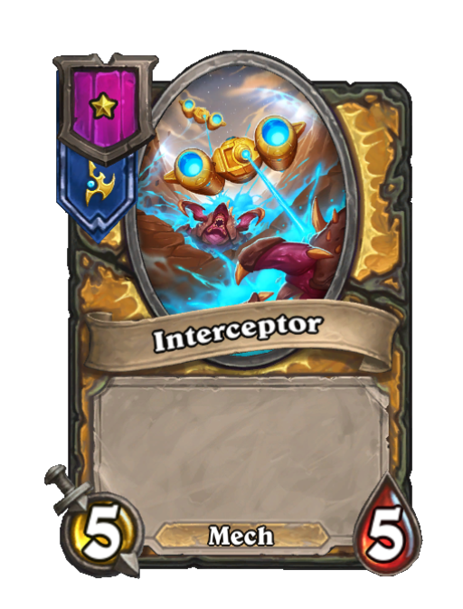 Interceptor is a Tier 1 Mech Minion in Hearthstone Battlegrounds with 5/5 stats. Created by: Carrier.