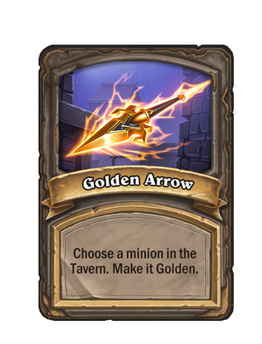 Golden Arrow is a Spell in Hearthstone Battlegrounds. Effect: Choose a minion in the Tavern. Make it Golden. Created by: Golden Arrow.