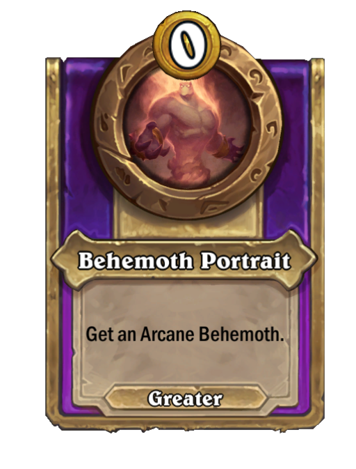 Behemoth Portrait is a Trinket in Hearthstone Battlegrounds. Effect: Get an Arcane Behemoth. This card is no longer in the pool (Legacy).