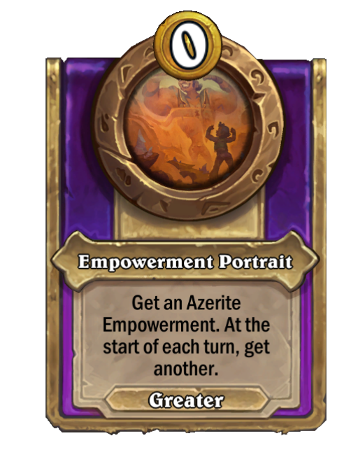 Empowerment Portrait is a Trinket in Hearthstone Battlegrounds. Effect: Get an Azerite Empowerment. At the start of each turn, get another. This card is no longer in the pool (Legacy).
