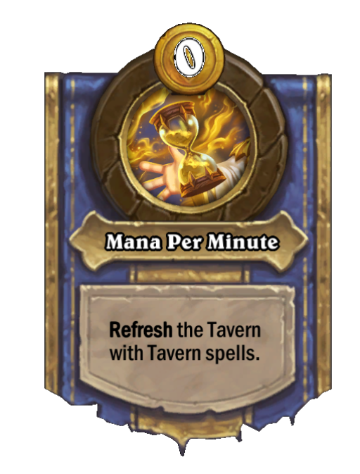 Mana Per Minute is a Hero Power in Hearthstone Battlegrounds featuring Refresh. Effect: Refresh the Tavern with Tavern spells. Created by: Time Twister Chromie.