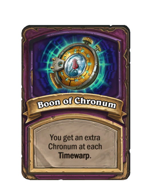 Boon of Chronum is a Anomaly in Hearthstone Battlegrounds. Effect: You get an extra Chronum at each Timewarp.