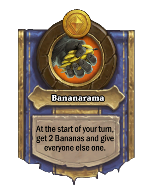 Bananarama is a Hero Power in Hearthstone Battlegrounds featuring Start of Turn. Effect: At the start of your turn, get 2 Bananas and give everyone else one. Created by: King Mukla.