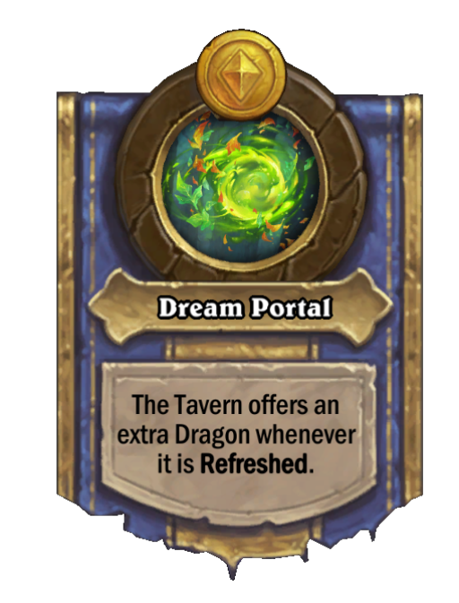 Dream Portal is a Hero Power in Hearthstone Battlegrounds. Effect: The Tavern offers an extra Dragon whenever it is Refreshed. Created by: Ysera.