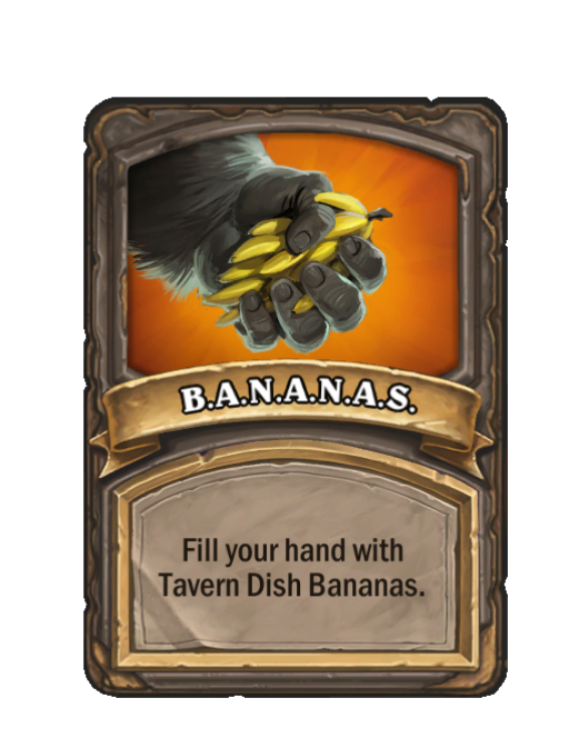 B.A.N.A.N.A.S. is a Tier 3 Spell in Hearthstone Battlegrounds (Darkmoon). Effect: Fill your hand with Tavern Dish Bananas. This card is no longer in the pool (Legacy).