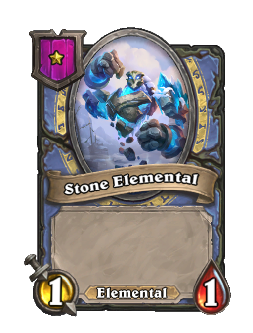 Stone Elemental is a Tier 1 Elemental Minion in Hearthstone Battlegrounds with 1/1 stats. This card is no longer in the pool (Legacy).