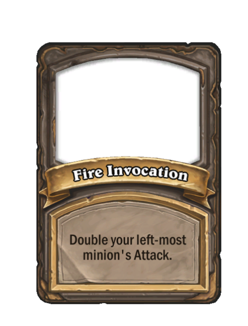 Fire Invocation is a Developer in Hearthstone Battlegrounds. Effect: Double your left-most minion's Attack. This card is no longer in the pool (Legacy).
