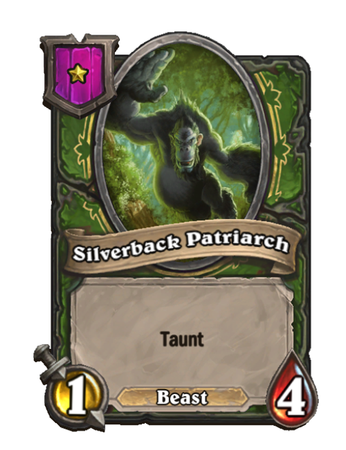Silverback Patriarch is a Tier 1 Beast Minion in Hearthstone Battlegrounds with 1/4 stats featuring Taunt. Effect: Taunt. This card is no longer in the pool (Legacy).