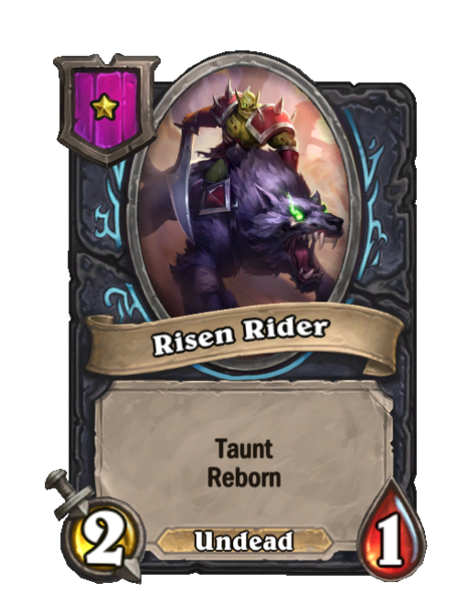 Risen Rider is a Tier 1 Undead Minion in Hearthstone Battlegrounds with 2/1 stats featuring Taunt, Reborn. Effect: Taunt Reborn.