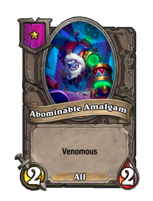 Abominable Amalgam is a Tier 1 All Minion in Hearthstone Battlegrounds with 2/2 stats featuring Venomous. Effect: Venomous. Created by: Menagerist.