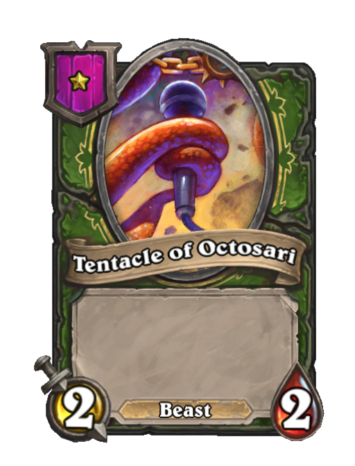 Tentacle of Octosari is a Tier 1 Beast Minion in Hearthstone Battlegrounds with 2/2 stats. This card is no longer in the pool (Legacy).