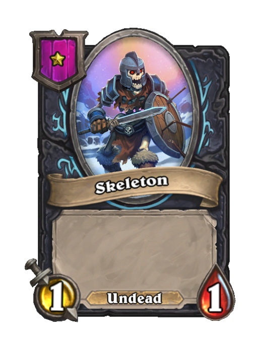 Skeleton is a Tier 1 Undead Minion in Hearthstone Battlegrounds with 1/1 stats. This card is no longer in the pool (Legacy).