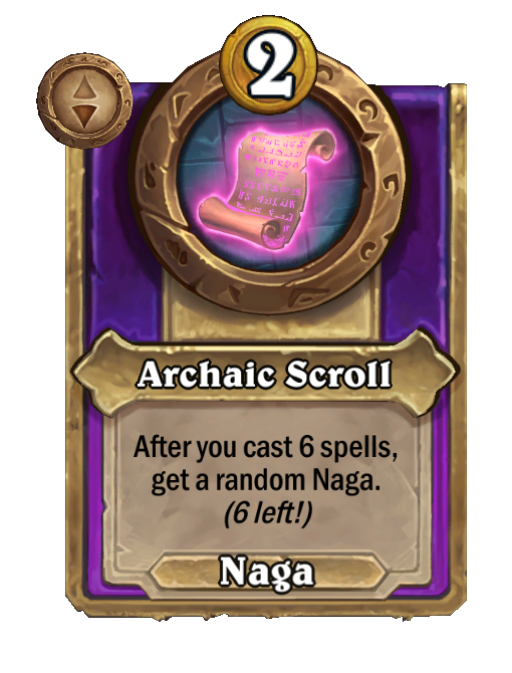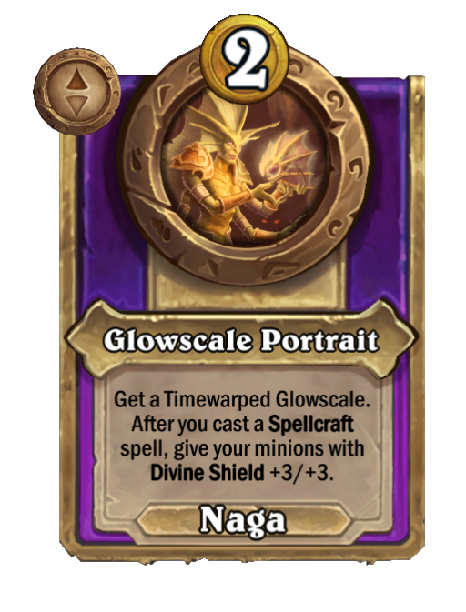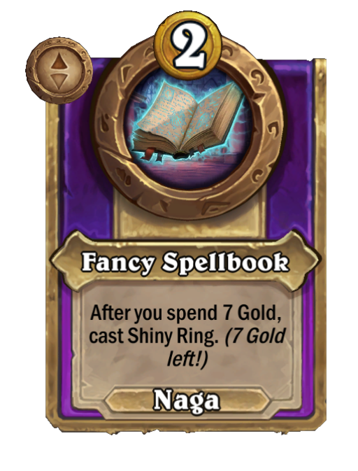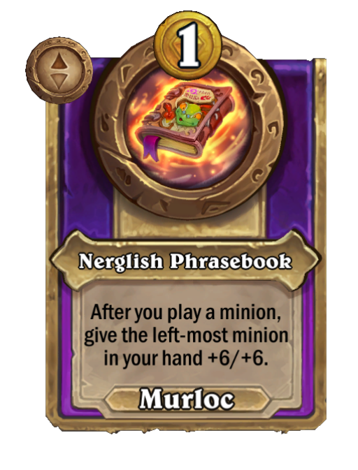 After you buy a Tavern spell, get a 1/1 Murloc and teach it that spell. (3 times per turn.)
