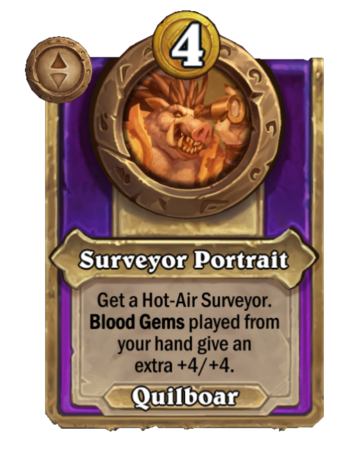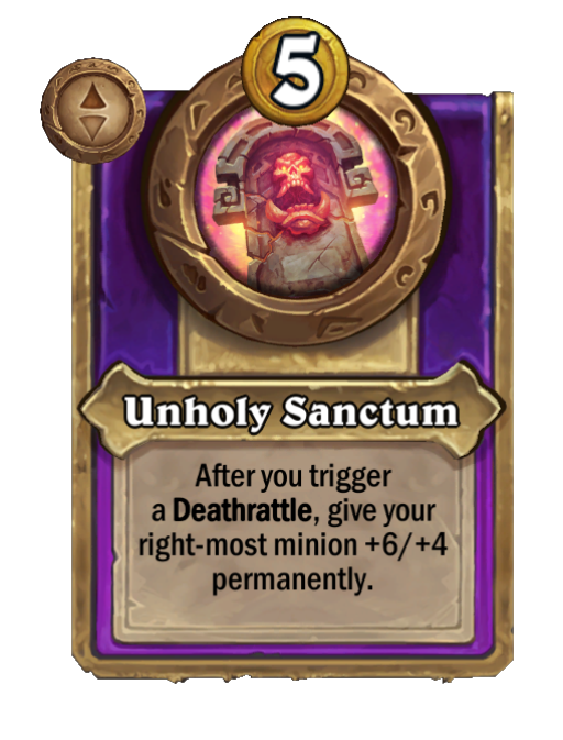 After you trigger a Deathrattle, this plays a permanent Blood Gem on 3 random friendly minions.